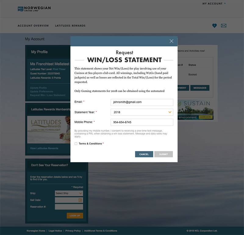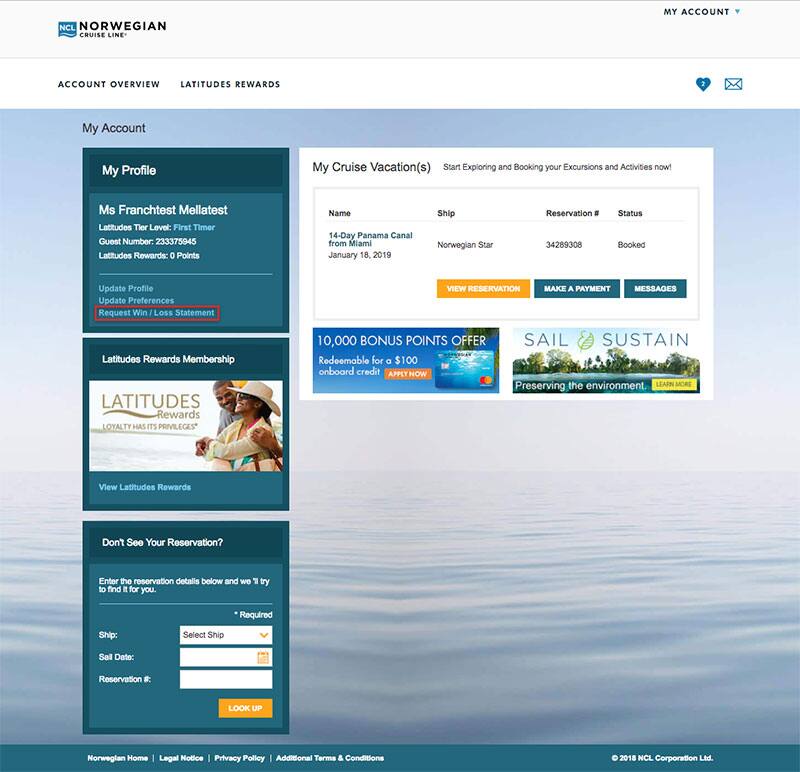 *For shared households each guest must have their own myNCL account in order to retrieve their Win-Loss Statement. Please ensure to create an account with your existing Latitude Number.