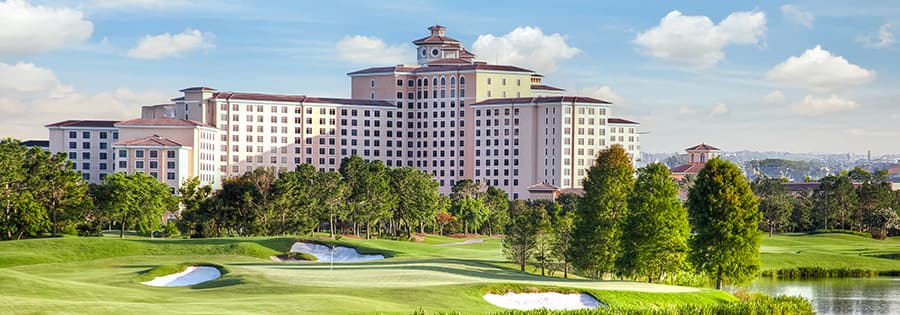 Amenities include 4 outdoor pools, a golf course and 2 hot tubs, along with 15 dining options, including a steakhouse and a Tuscan-inspired restaurant.