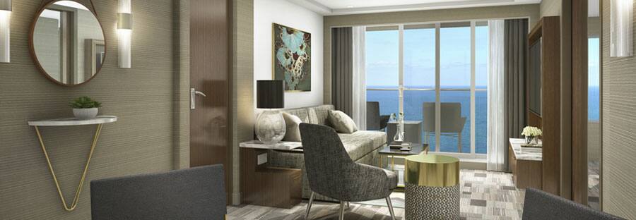 Revel in spacious serenity at sea. Our luxurious suites offer only the finest appointments throughout, butler service, and more.