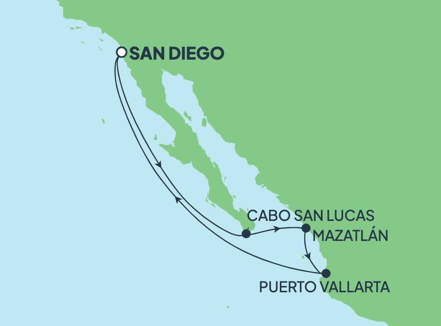 Embark on a Mexico cruise to remember on a 8-day round-trip cruise from San Diego on board Norwegian Jade®. Journey to the jewel of the Baja Peninsula, Cabo San Lucas, famous for its world-class sportfishing, as well as its high-end resorts. Sip margaritas, enjoy authentic Mexican cuisine and take a drive along the foothills of the Sierra Madre Mountains in Mazatlán. Then immerse yourself in the small village charm of Puerto Vallarta, with its 26 miles of spectacular beaches along the Banderas Bay.