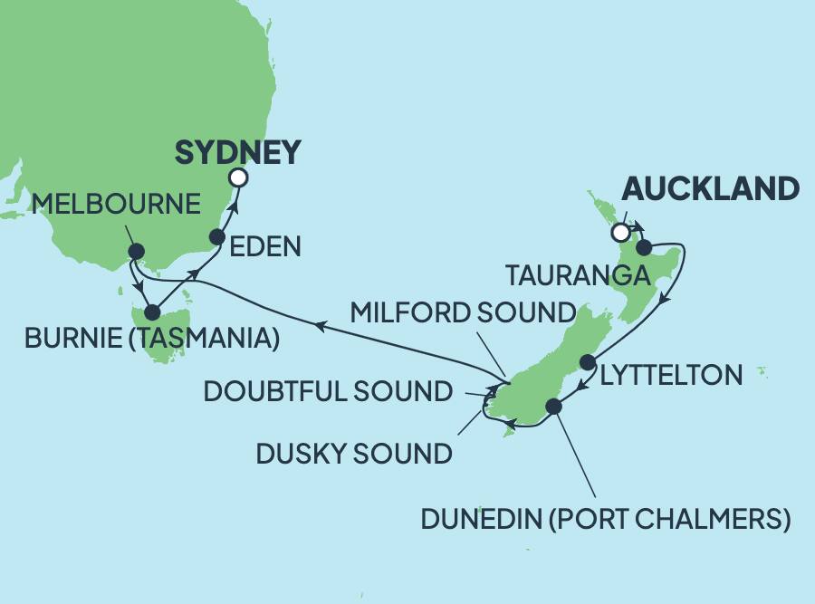 Set sail on a spellbinding 11-day vacation, beginning in Auckland’s sparkling harbor and concluding on Sydney’s vibrant shores. In Tauranga, New Zealand’s coastal beauty greets you with golden beaches and the geothermal marvels of nearby Rotorua, where bubbling mud pools and steaming hot springs captivate the senses. Continue south to Lyttleton, a charming port city where Victorian architecture meets modern flair. Discover the scenic Canterbury Plains and the breathtaking landscapes of Banks Peninsula. Cross the Tasman Sea to Melbourne, Australia’s cultural capital, where hidden laneways, trendy cafes, and the lush Royal Botanic Gardens await. Each stop unveils a tapestry of natural wonders and culture, promising an unforgettable journey across land and sea.