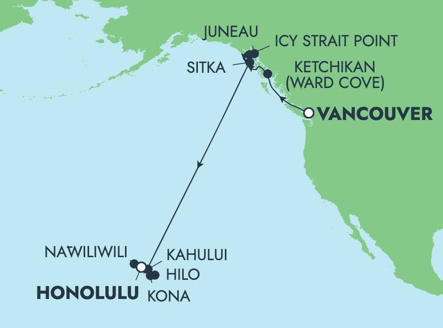 Dreaming of a once-in-a-lifetime journey that captures the wild beauty of Alaska and the tropical allure of Hawaii? Set sail from the 'big-city sophistication meets small-town charm' of Vancouver on a 16-day voyage to Honolulu. At Icy Strait Point, feel the thrill as you zoom down the ZipRider, the world’s longest and highest zipline, soaring 1,300 feet above a lush rainforest. In Juneau, enjoy a narrated drive through the city to the Mendenhall Glacier Visitor Center, where stunning glacier views await you from an accessible vantage point. Finally, make the most of your overnight stay in Nawiliwili with an unforgettable adventure, camping under the stars.