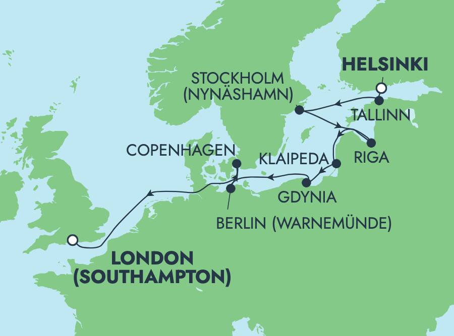 Set off on an extraordinary 10-day journey with Norwegian Cruise Line, sailing from the vibrant shores of Helsinki to the historic port of Southampton. Along the way, Northern Europe’s rich history, captivating culture, and breathtaking beauty will reveal themselves at every turn. Wander through Tallinn’s medieval streets or marvel at the grandeur of Alexander Nevsky Cathedral. In Nynäshamn, Sweden, immerse yourself in Stockholm’s royal history at the Royal Palace or savor traditional Swedish delicacies on a culinary tour. Explore the charming seaside town of Warnemünde, Germany, or take a day trip to Berlin’s iconic landmarks. Finally, in Copenhagen, Denmark, cycle through picturesque streets or cruise the canals past the Little Mermaid statue and the colorful Nyhavn waterfront.