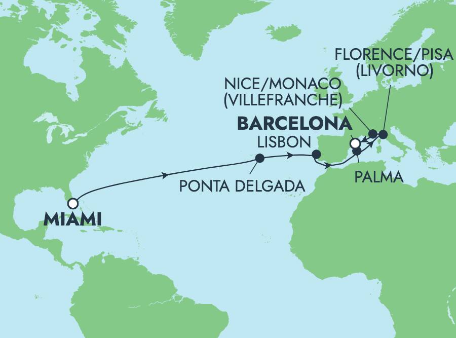 Embark on the vacation of a lifetime during this transatlantic voyage on Norwegian Viva® — one of our newest and most innovative ships. Dip into relaxation in Ponta Delgada’s natural hot springs and soak in scenic vistas while touring the countryside. From Lisbon, experience the charming 13th century Obidos and discover why it’s considered one of the country’s most romantic villages as you visit the medieval castle and stroll its narrow, cobbled streets. Nestled on the west coast of Tuscany, Livorno offers the freshest seafood, awe-inspiring forts and splendid coastal views with ample cafes and boutiques that await your discovery.