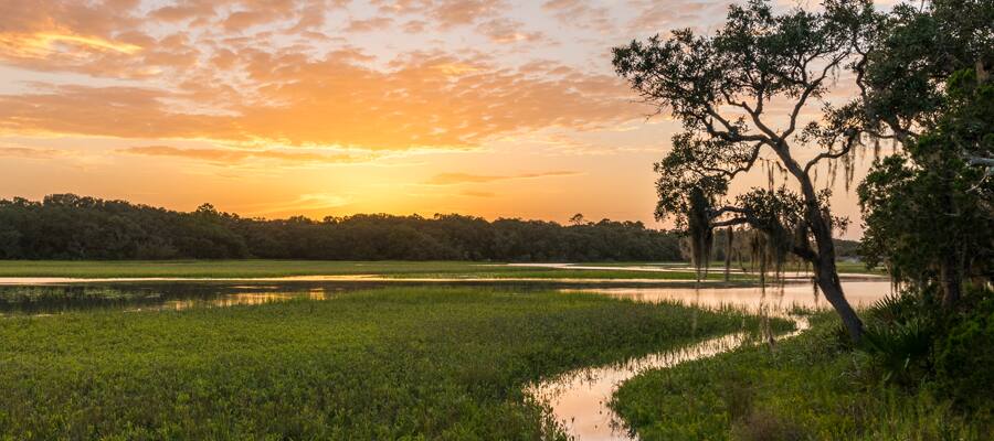 For an enchanting day at the beach, consider visiting Big Talbot or Little Talbot Island — both boast untouched landscapes ranging from rolling dunes and scenic beaches to salt marshes and hiking trails meandering past expansive southern live oaks.