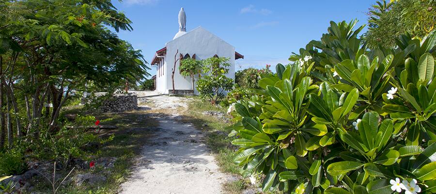 The Chapelle Notre Dame de Lourdes, built in 1898 to commemorate the island’s first Catholic missionaries, offers sweeping east–west panoramic views.