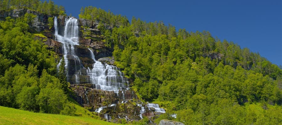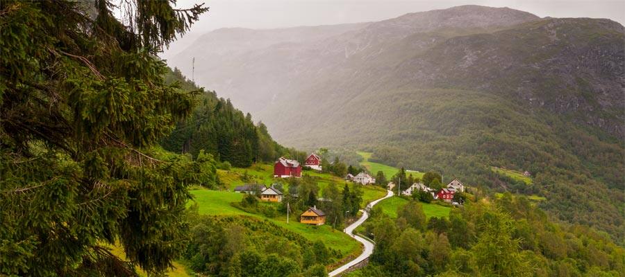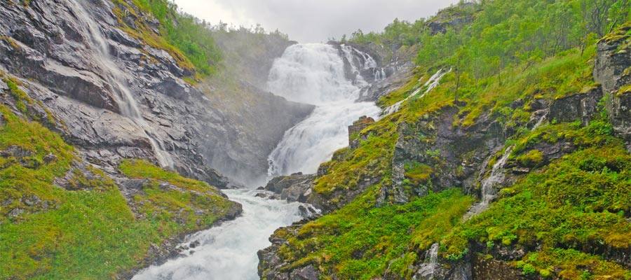 Organized Shore Excursion for Stalheim Canyon, Tvinde Waterfalls, Fjord Village, Osterbo Mountain. Taxis, buses, train available.