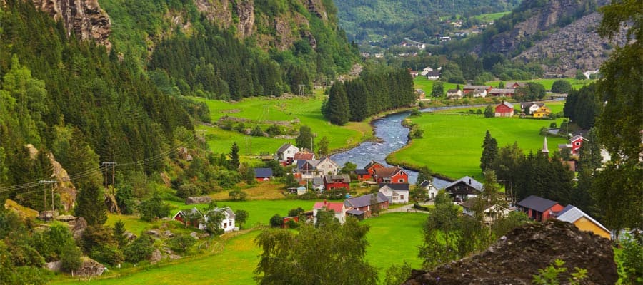 Situated deep within the valleys of Norway, Flåm is a nature lovers' escape. The towering mountain cliffs and sweeping waterfalls are a pure splendor. The Flåm Railway is a point of interest and so are the various fjord sightseeing tours.