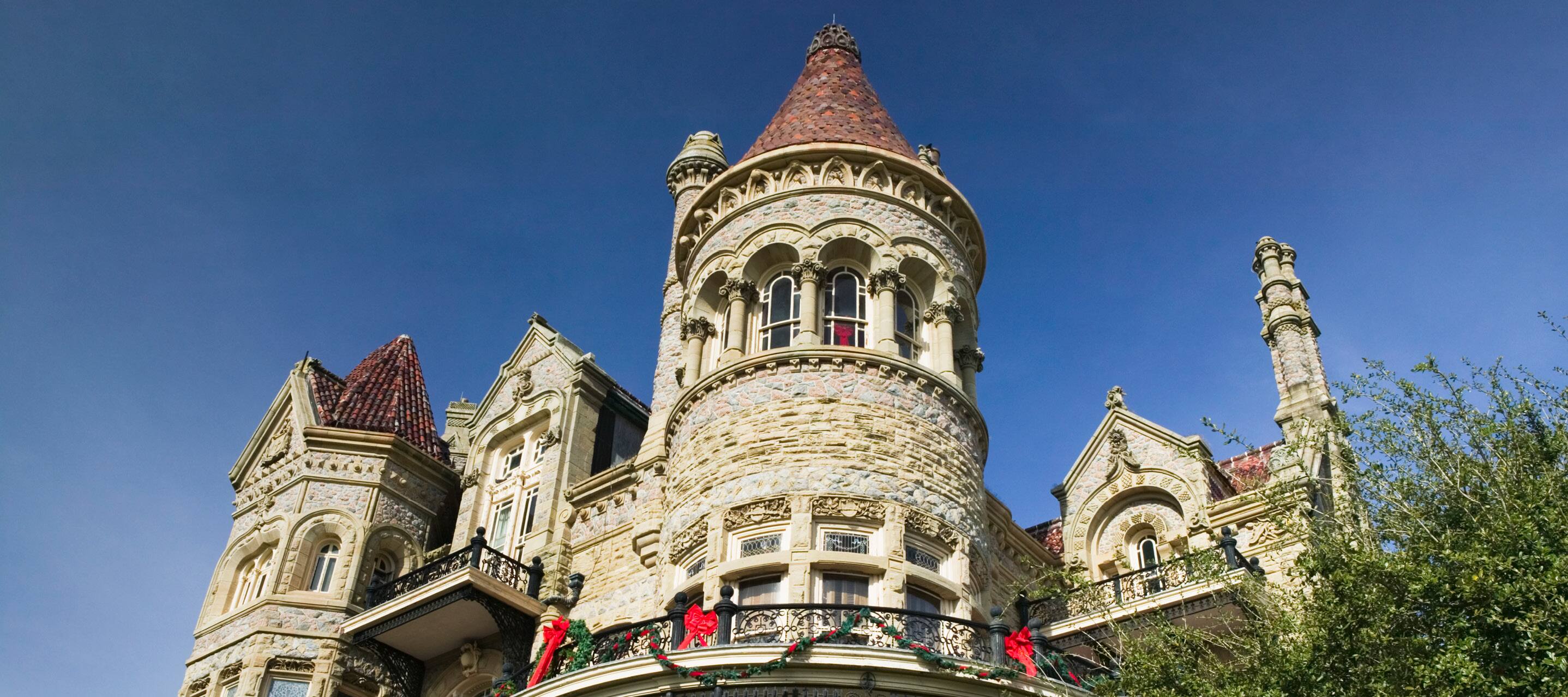 Completed in 1893, the stone mansion now known as Bishop’s Palace was originally built for the Gresham family before being purchased as the residence for Bishop Christopher E. Byrne. Today, the dramatic estate is open for tours to the public and owned by the Galveston Historical Foundation.