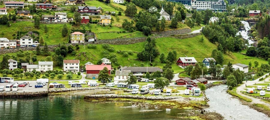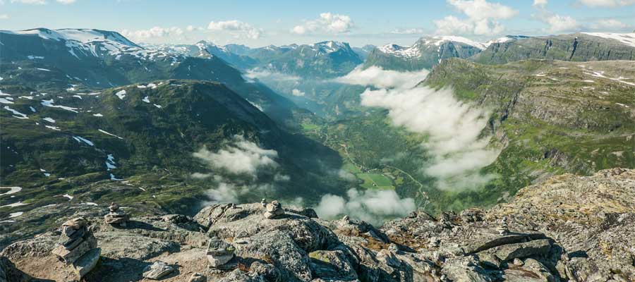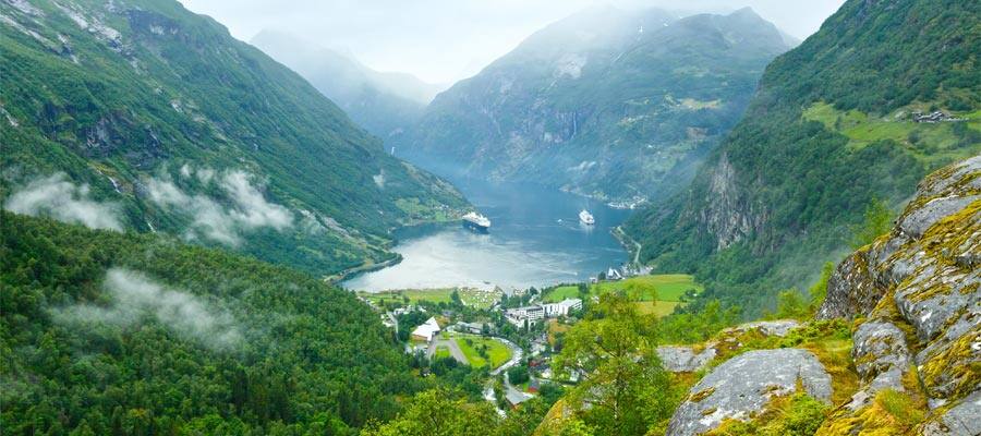 A quaint village nestled in a valley in western Norway, Geiranger grants a respite to remember. Visitors come from all over to explore the fjord and its gorgeous views of nearby waterfalls, mountainscapes and charming farms.