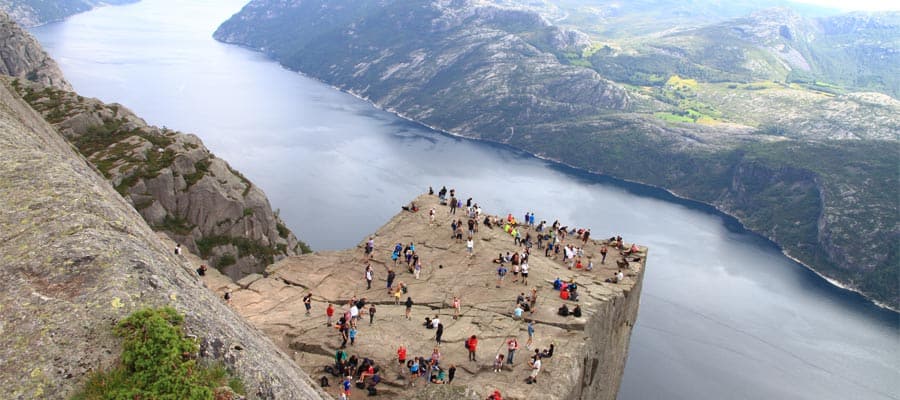 Organized Shore Excursions for Dalsnibba Mountain, Eagle Road, Overland Tour to Geiranger with the Briksdal Glacier. Taxis available on main road.
