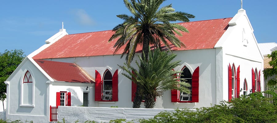 The 19th century Grand Turk Lighthouse is the island’s most famous landmark. Though the lighthouse isn’t open to the public, you can explore the grounds and walk along the nearby cliffs that offer sweeping views and where you might see wild horses and donkeys roaming the area.