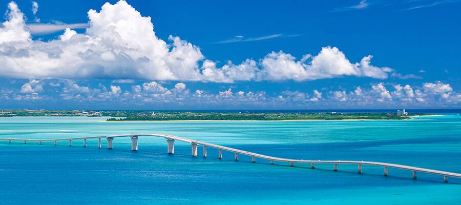 The Ikema bridge spans 4,675 ft (1,425 meters) and connects Miyakojima with Ikema island to its north.