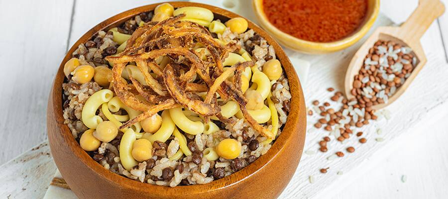 During your day of exploration, sample one of the country’s most popular street foods, koshary, which consists of macaroni and rice that’s mixed with lentils and lemon sauce.