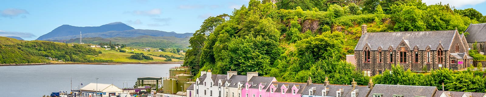 As the largest village and capital of the Isle of Skye, Portree is a cultural hub for the island and is your gateway to the surrounding spectacular landscapes. The village’s colorful waterfront buildings welcome you into its natural harbor that flows into the rolling emerald-green hillsides. From medieval castles and tumbling waterfalls to peaceful beaches and rugged rock formations that capture the imagination, the scenery is as enchanting as it is varied. You can spend the day exploring this outdoor rocky wonderland or savor whiskey on the rocks during a distillery tour, go birding or visit a seal colony, or step into the past at a medieval castle.