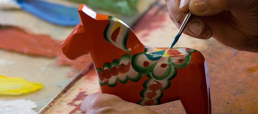 Look for Sami handcrafts like textiles and knives, the traditional Dalarna painted wooden horse, exquisite silver, pewter items, glass and amber.