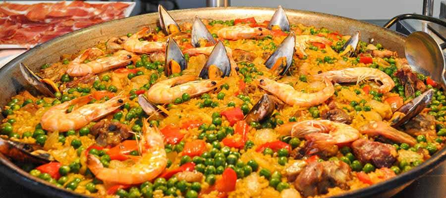 Valencia is the birthplace of paella, a traditional Spanish dish made with saffron-colored rice, fresh seafood or meat and a variety of vegetables.