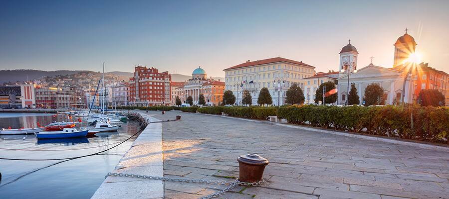The scenic port city of Trieste is steeped in history and natural beauty. Nestled atop a limestone plateau on a thin strip of land between the Adriatic Coast and Slovenia, the region has been ruled by multiple empires through the ages. This cultural fluidity is reflected in the awe-inspiring architecture and fusion of delicious cuisine found throughout the city. From touring museums and historic sites to strolling along its waterfront or reclining on a white-sand beach, this isolated, picturesque region of Italy boasts a wide range of attractions and activities.