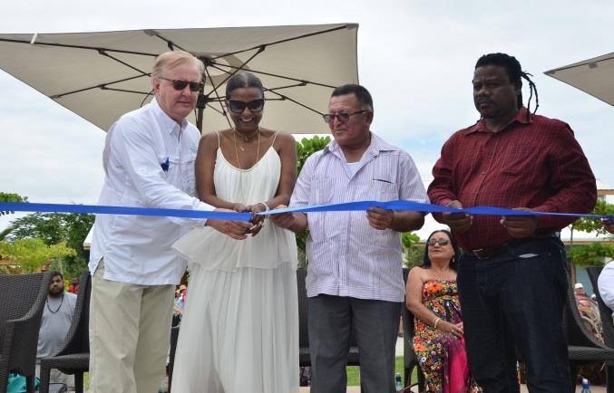 Guests onboard Norwegian Dawn, sailing from New Orleans, today were the very first to experience all that Harvest Caye has to offer, stepping off the ship and right into paradise. Colin Murphy, senior vice-president of destination and strategic development for NCLH led a ribbon cutting ceremony and official grand opening, where he was joined by the Honorable Manuel Heredia, Minister of Tourism and Civil Aviation for Belize, Honorable Edmond Castro, Minister of State for National Emergency Management for Belize, and Mrs. Kim Simplis Barrow, Wife of Belize’s Prime Minister Dean Barrow.