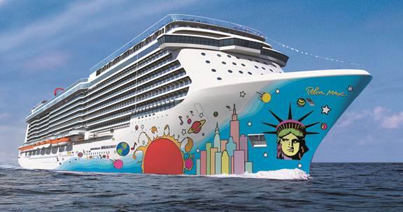Norwegian Cruise Line today revealed Norwegian Breakaway's signature hull artwork designed by pop icon and America's most popular living artist, Peter Max. This is the first time Norwegian has commissioned a well-known artist to paint the hull artwork on one of its ships. Launching in April 2013, Norwegian Breakaway will be the largest ship to homeport in New York City year-round. Max's signature artwork will cover approximately 40,000 square feet of Norwegian Breakaway's hull.