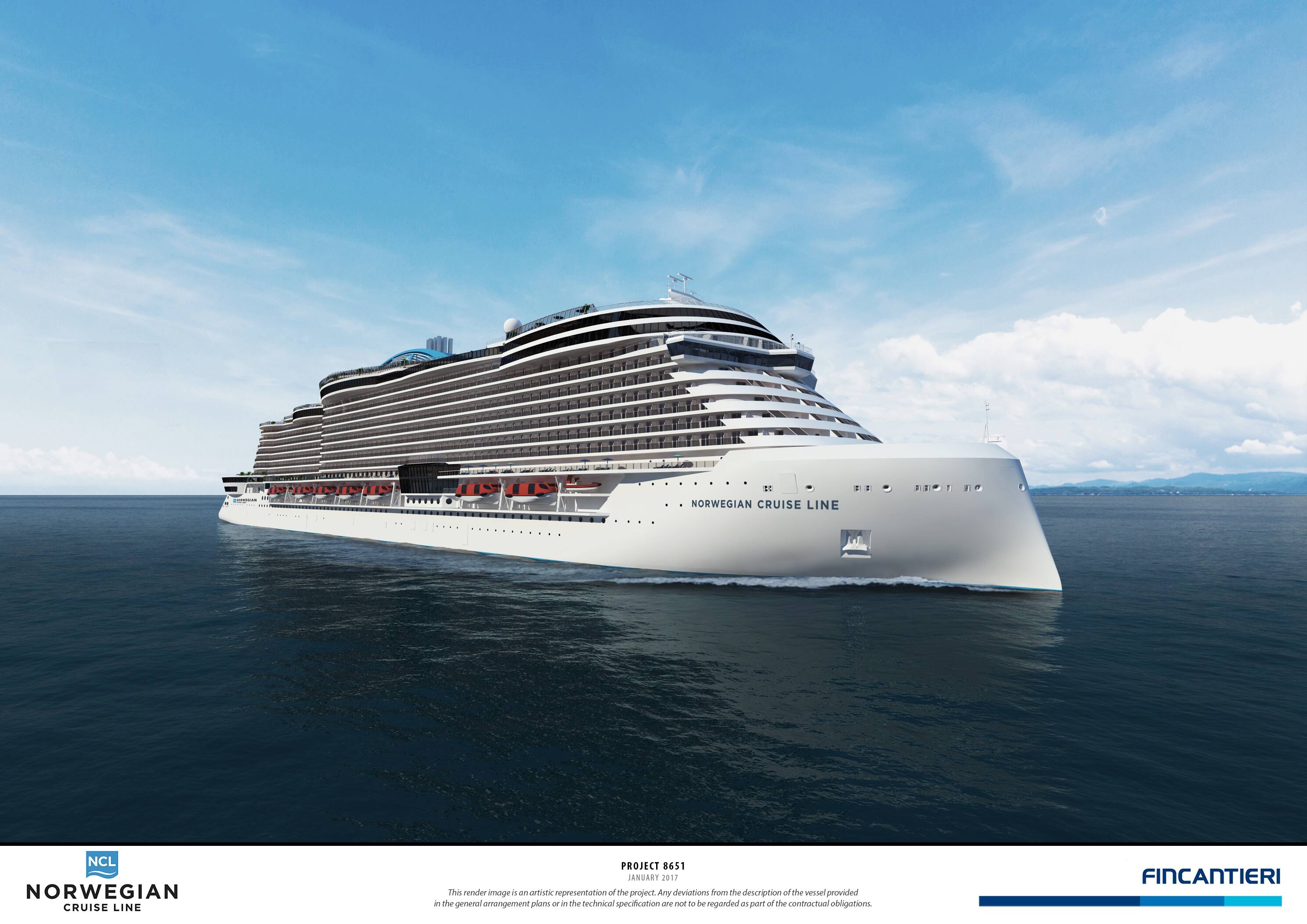“We are extremely excited to collaborate with Norwegian Cruise Line and this partnership allows us to include a new prestigious client in Fincantieri’s portfolio,” said Giuseppe Bono, CEO of Fincantieri S.p.A.