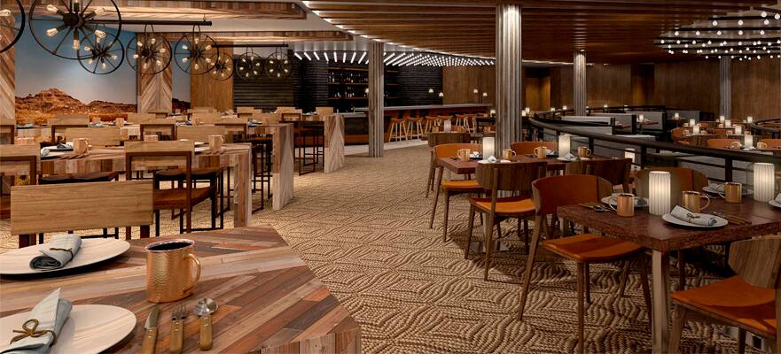 Modern décor and premium ingredients will meet southern flavors at the all-new Texas Smokehouse, Q, where guests will be able to tap their boots to the beat of live contemporary pop country music each night as they indulge in authentic Texas barbeque in a sleek urban setting. The new à la carte specialty restaurant will infuse an explosion of flavors in every bite with a selection brisket, ribs, chicken and sausages and more freshly smoked over hickory, oak and pecan woods. Q will offer generous portions of sides and starters including deviled eggs with natural air cured ham, pickled jalapeños, fresh cheddar and breadcrumb-crusted mac-n-cheese, baked sweet potatoes smothered in pecan honey butter and cinnamon and more. Guests can round out their meal at Q with a mason jar of fresh banana pudding or indulge in bread pudding in whiskey sauce.