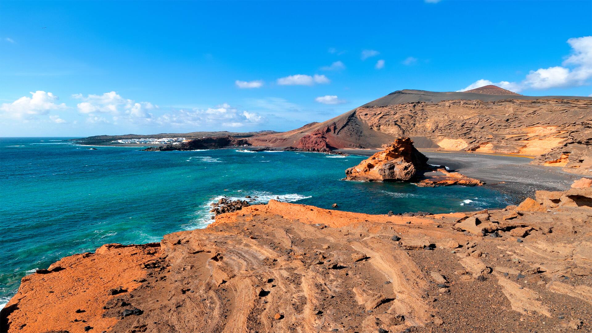 Enjoy a drive to the southern part of Lanzarote, passing the picturesque villages of Macher and Uga and crossing black lava streams before arriving to the southwest coast of the island. Pass by El Golfo, a breath taking green Lake, for a photo stop before reaching the Timanfaya National Park. The park is a natural museum of unique beauty. Bizarre craters, streams of lava and fields of ashes formed by eruptions during the 18th century are mixed here in a nearly unrealistic lunar landscape. Upon arrival to Islote de Hilario, a crater with the highest surface temperatures in the region, you’ll experience still-existing activity not far underground as you gather around for the fun demonstrations. The geothermal energy is so strong that water gushes up and dry weed catches fire within seconds. Board a coach to embark on a tour of the Fire Mountains called the "Lunar Route”, which goes deep inside the heart of the national park and lasts approximately 45 minutes.