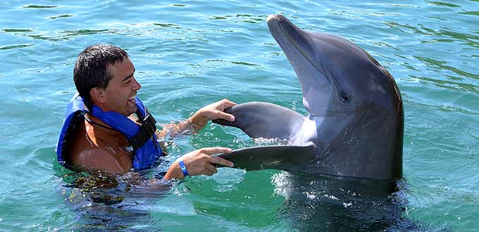 Note: Children may join Dolphin Push Pull and Swim (Encounter activity only) with 2 paying adults. Children over 48 inches (1.21 m): Eligible for all programs; minors under 18 must be accompanied by a paying adult. Adults aged 60–79: May participate in all programs, provided they are autonomous, have no mobility or medical issues, and can swim. Guests must assess their health before participating; if in doubt, consult a physician. Dolphin Rides are restricted to guests under 286 lbs (130 kg). Dolphin Rides not permitted for guests with: heart disease, diabetes, recent surgery, motor limitations, asthma, epilepsy, joint issues or overweight. Participation is not allowed under the influence of alcohol or drugs. Guests disregarding safety instructions may be restricted or removed from the activity. Life jackets are mandatory in all programs. Even without a minimum age, if the life jacket does not fit securely, the guest will not be able to enter the water. All participants must sign a liability waiver before the activity. Pregnant women are not allowed to participate in this program. Please bring a towel and cash for souvenirs, photos, soft drinks and snacks. Biodegradable sunscreen and sunglasses are recommended. Cameras/video cameras are not allowed for use by participants or observers at the dock area. Digital photos of your dolphin experience are available for purchase. The interaction time with the Dolphin is 30 minutes.