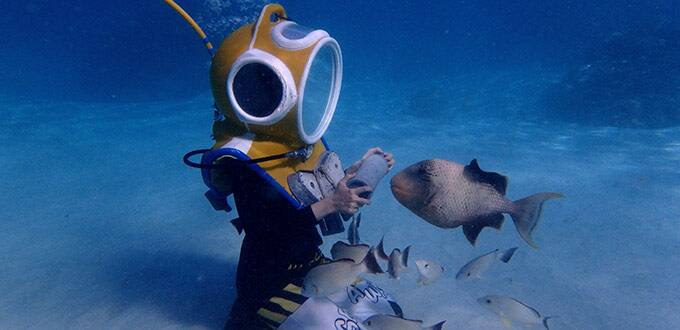Note: Participants must be at least 8 years of age. Tour is not recommended for guests with mobility concerns, heart conditions, asthma, pregnant women or those who suffer from claustrophobia. Guests should be in reasonably good physical condition. It will be necessary to negotiate a ladder to board the boat from the water. Only 8 persons at a time will be allowed underwater for the helmet dive. There are no changing facilities. Swimwear worn under a cover-up, sun cap, sunglasses, biodegradable sunscreen, towel and water shoes are recommended. Guests are cautioned not to touch or step on any coral for both safety and environmental reasons.