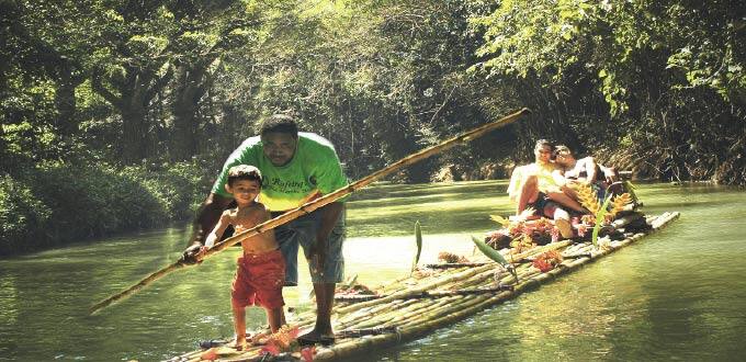 • Relax on a bamboo raft as your guide poles it down the serene Martha Brae River.