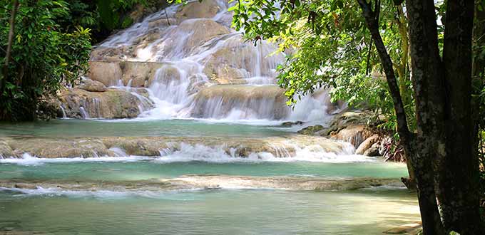 Relax during your air- conditioned drive through Falmouth, one of the oldest towns in Jamaica. You’ll arrive at Dunn’s River Falls where you’ll climb 600 feet of cool refreshing water as it cascades over natural limestone terraces. Guides are provided to assist you when ascending the rushing waters as it plunges directly into the pristine Caribbean Sea. After this invigorating experience you’ll be transported to Dolphin Cove.