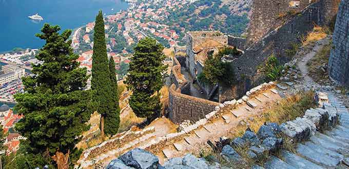 For the fit and active person who wants to learn about the history of this beautiful town and have the most amazing views, this tour is worth every one of the 1,350 zigzagging steps to the top. Start with an orientation walk of Kotor and see its squares, cathedral, Maritime Museum, churches, noblemen houses and terraces. The medieval city of Kotor has a turbulent history of invasions. It was watched over and defended by an imposing network of towers, bastions and ramparts built along the cliffs of Mount Sveti Ivan or St John.