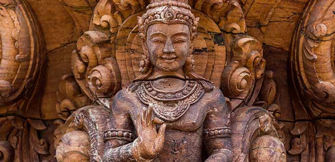 Designed as a pagoda-shaped pavilion, the building is over 340 feet tall, and a fusion of religion, culture and art. Originally crafted entirely from Thailand's native teak, parts of the Wooden Pavilion have been replaced by the more durable redwood to withstand the ravages of the salt air. Every square inch of the building is covered with intricate and detailed wooden sculptures depicting the Ancient Vision of Earth, Ancient Knowledge and Eastern Philosophy. Once inside, you will have an opportunity to view the cavernous inner chapel, which reveals scenes from Chinese, Hindu and Buddhist traditions.