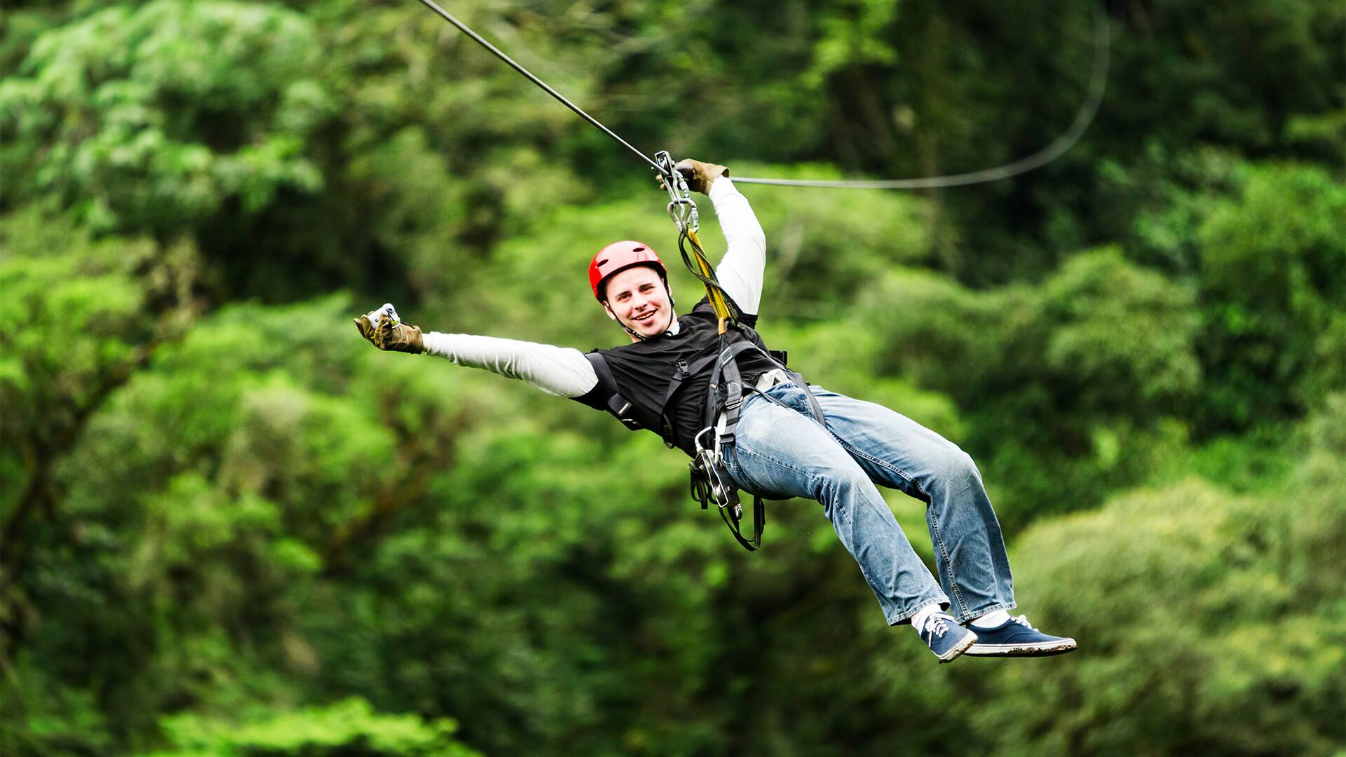 • Race through the tree canopy on a series of ziplines that stretch over one mile.