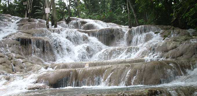 Your guide will also demonstrate the cave’s musical stones and be sure to toss a coin in the wishing well before your departure. A refreshing beverage is provided at the end of the tour. Continuing to Ocho Rios, you’ll visit the island’s premier attraction, Dunn’s River Falls. It’s a place of spectacular beauty where the river cascades over a giant limestone staircase to a white sand beach and the warm Caribbean Sea. Climb this 600 ft. cascade with the aid of an experienced guide, splash around in the cool crystal clear pools or just relax and enjoy the view. Next, it’s off to Scotchies for lunch, a local eatery serving Jamaica’s traditional meats of jerk chicken and pork. You'll dine in a rustic pagoda style setting surrounded by tropical foliage. From Scotchies enjoy the relaxing return drive to Montego Bay.