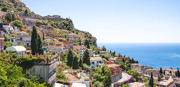 After departing from the pier, you will enjoy a scenic drive south to Taormina, an ancient city that rises almost perpendicularly from the sea. It’s a beautiful setting with an alluring medieval character, as you will discover while strolling its narrow, cobblestone streets.