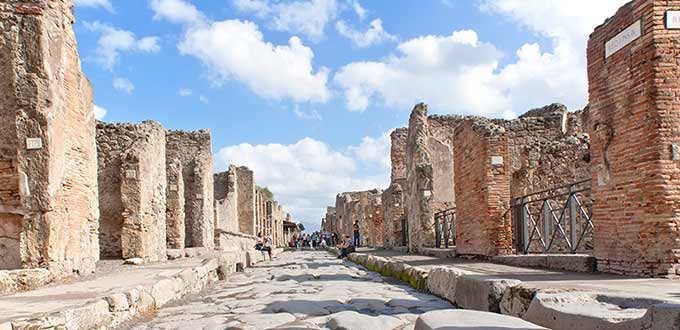 Pompeii once supported a flourishing civilization that was revealed nearly intact after being buried for about 1,700 years. The once prosperous commercial and political center with a population of 25,000 was hidden under 20 feet of volcanic ash and cinders during the fateful eruption of Mt. Vesuvius in 79 A.D. Originally a seaport, the eruption raised the land and left the ruined town far from the bay. You’ll enter Pompeii through the Sea Gate and walk along the cobblestone streets to the Agora. Surrounded by temples and porticoes, this was the religious, civic and business center of the city.