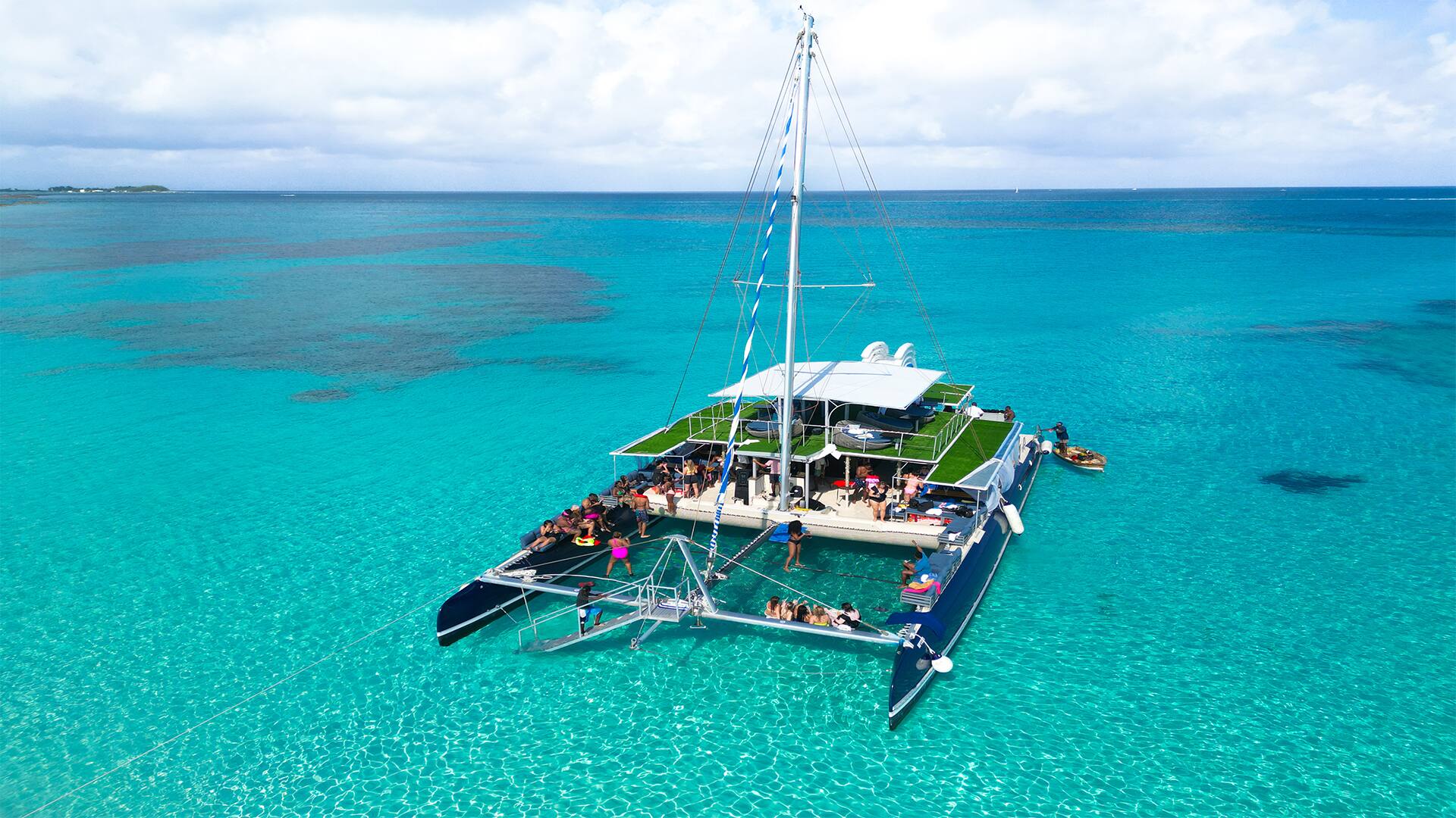 • Race down the catamaran’s water slide and snorkel the crystal-clear waters.