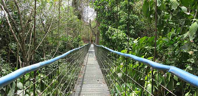 • Look for wildlife in the tree canopy while walking along several suspension bridges.