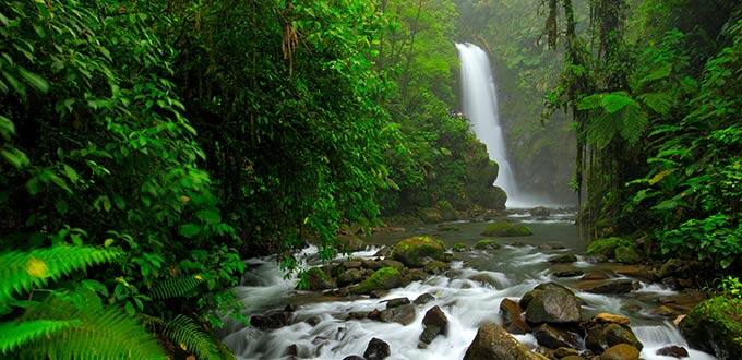 To reach the waterfall, you will hike about two miles along a nature trail that initially winds through an aviary, a serpentarium and exhibits devoted to indigenous animals such as jungle cats, hummingbirds and monkeys. The hike alone provides a fascinating introduction into the spectacular biodiversity within the surrounding rainforest and cloud forest.