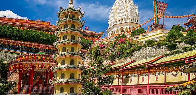 Ride a tram to the top of Penang Hill for a spectacular view of Georgetown and beyond, and then visit a Buddhist temple so famous that it has become an icon of Malaysia.
