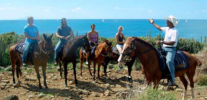 See the coastal flora and fauna of Seaside Nature Park, while enjoying this leisurely horseback riding experience, and cool down with your horse in the Caribbean Sea. No prior riding experience is required. Ride your horse behind the guide in a small group, over the winding trails. Enjoy the view of the neighboring Caribbean islands like St. Barts and Saba, while your horse follows the trails along the rocky coastline. The guides will tell you about the flora and fauna, as well as the island’s rich history. Photo stops will be made.