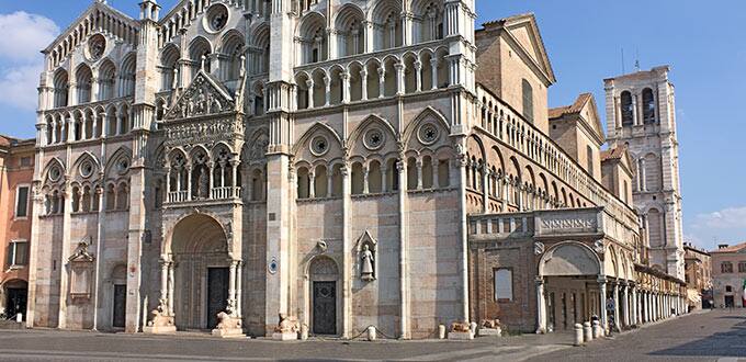 Ferrara’s network of broad, straight, parallel streets were plotted around the city’s lavish churches and palaces, the most impressive of which you’ll see during your guided walking tour. The largest monument from the medieval period is the city cathedral, a Romanesque-Gothic masterpiece containing important artwork such as bronze statues of saints and paintings from the Ferrara school.