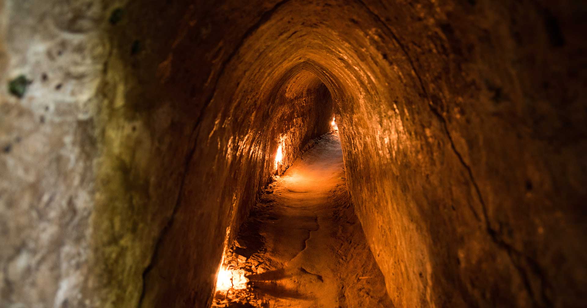 Explore a vast underground network of tunnels that hid and protected thousands of Viet Cong troops during the Vietnam War. The section that you will tour lies beneath the Cu Chi district in the countryside north of Ho Chi Minh City. Communist forces began digging the tunnels in the late 1948, when they were fighting the French for independence. As you will discover, the tunnels span thousands of miles and once hid an underground city of sorts with living quarters, smokeless kitchens, hospitals and schools. The tunnels were typically five feet high and not even three feet wide, with air passages to the surface camouflaged to look like natural holes from tree roots or animals. The tunnels that you will traverse have been expanded somewhat for safety and convenience. Digging the tunnels was an incredibly arduous and time-consuming endeavor, as they were often dug by hand. Before abandoning them, the Viet Cong left booby traps for the invading troops.