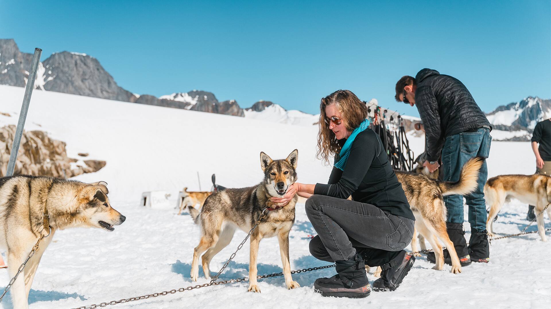• Watch a team of dogs effortlessly pull a sled across the snow-packed glacier.
