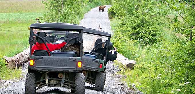 Your 4x4 adventure begins in Sitka and takes you to a remote island, where you will ride Polaris Rangers. You’ll enjoy exploring wildflower meadows, beautiful scenery while searching for wildlife such as Alaska Brown Bear and Sitka Black Tail Deer. You’ll be greeted at the tender pier by your van driver who will take you to an aluminum landing craft for a high-speed boat ride to Kruzof Island where your 4x4 ride begins. Upon arrival, you’ll meet your guides who will have your 4x4’s warmed up and ready to go. After a quick safety orientation and operating instructions, you’re ready to set off on your adventure. Your guide leads you along an off-highway vehicle trail though muskegs and forest on the way to Iris Meadows estuary where wildlife are frequently seen. Stops will be made along the way for interpretive sessions and photographic opportunities. When you arrive at the estuary you can park the 4x4 to walk around and enjoy the scenery, watch for wildlife and take photos. After a snack, it’s time to ride back and catch the boat back to Sitka.