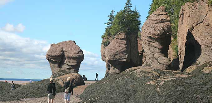 Experience some of the world’s highest tides as you explore a world-class attraction. Travel along the picturesque Fundy coastal drive to the Hopewell Rocks. Your local guide will delight you with both facts and folklore surrounding the Bay of Fundy coastal communities. Pass through Fundy National Park, where you can often spot various birds and even an occasional moose. Then get ready to discover the Hopewell Rocks, an icon of New Brunswick. These flowerpot rocks were created by the clash of continents, carved by melting glaciers, then sculpted by the highest tides in the world. Interpretation will be delivered to explain how twice daily one hundred billion tons of water creates tides that can rise to 50 feet. Your tour includes a boxed lunch that you can enjoy at your leisure.