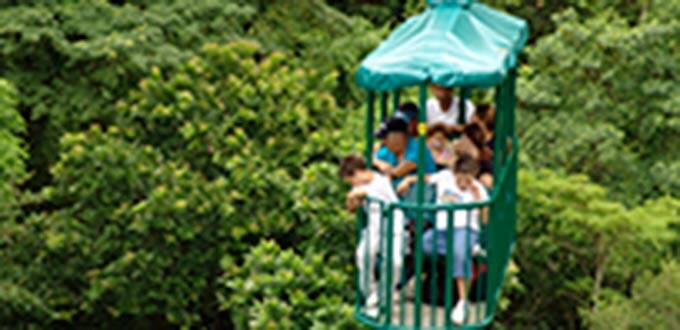 The Rainforest Sky Ride in St. Lucia provides you with a bird's eye view of a truly mature oceanic rainforest. Nurtured by warm, gentle rains and rich volcanic soils, St. Lucia's forests have achieved a state of ancient majesty. Gondolas safely glide you through and over the tree tops, where knotted and twisting woody vines wind to the tops of old growth rainforest trees. Dense thickets of surreal vegetation merge with cascades of flowers. Lavender stars, orange bursts, yellow berries and white lace thrive on the branches of fragrant flowering trees.
