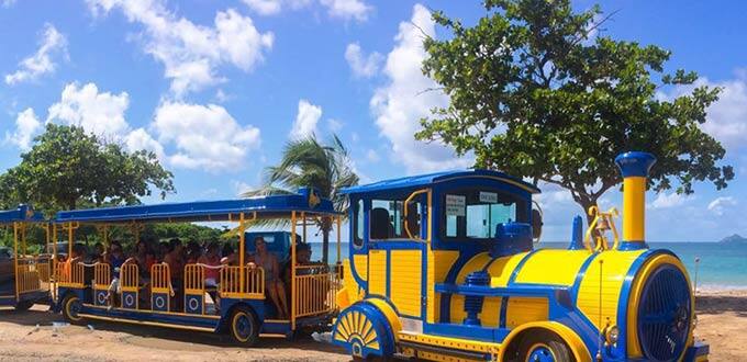 Back on the train the guide will keep you informed of points of interests as the train slowly makes its way through the main city highlights en route to the beach. At the beach enjoy a complimentary rum or fruit punch while enjoying a photo stop at this picture perfect white sand beach. Put your feet in the water while feeling the refreshing breeze of the Caribbean seas.