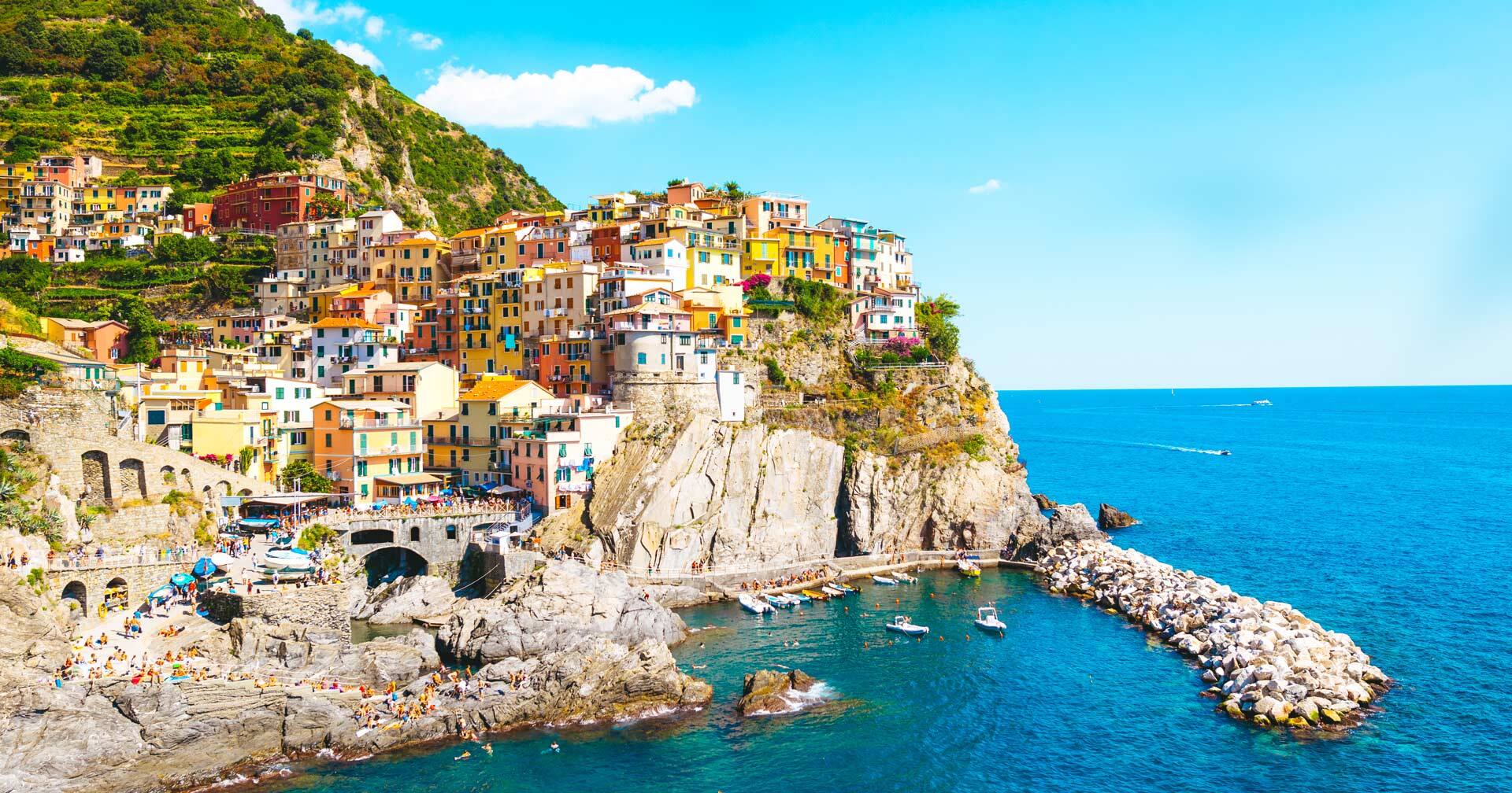 This tour also includes a short cruise to Vernazza, one of the most popular villages of the five. It's located along the Vernazzola stream and clings spectacularly to the rocky face of a cliff. Narrow, steep paths descend toward the main road, which leads to a charming waterside square. Here, you can take in the local atmosphere and gaze upon the typical tower-shaped houses. There are also many other architecturally elaborate buildings decorated by portals and porticos, which serve as a reminder of Vernazza's prosperity under Genoese domination.